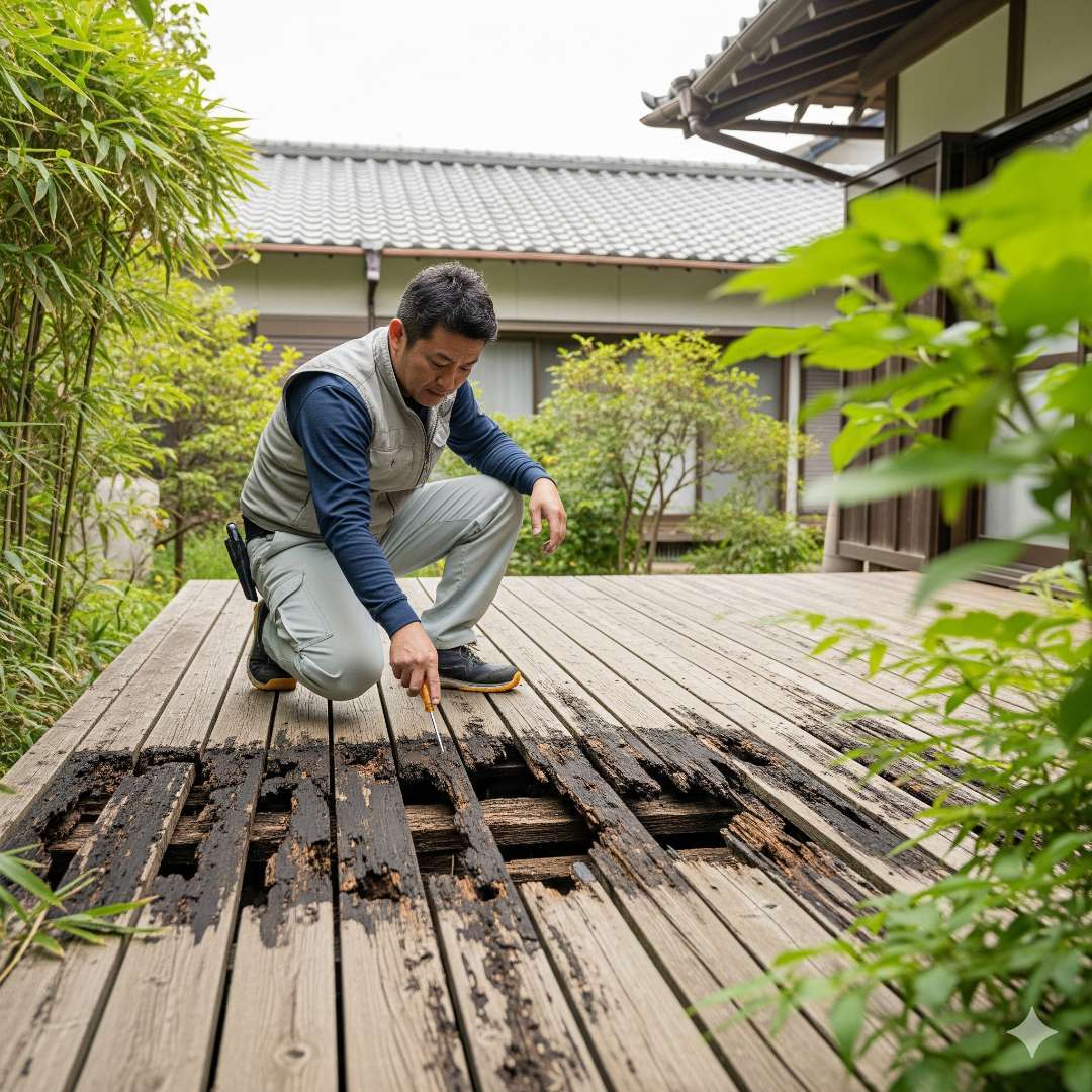 腐敗が進行したウッドデッキの症状とリスク
